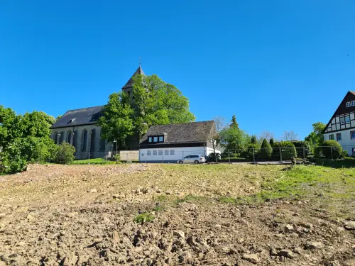 Die Stadt Bad Driburg veräußert ein Baugrundstück in Pömbsen. Das Grundstück hat eine Gesamtgröße von 2.363 m². Das unverpachtete Grundstück ist nach genehmigtem Bauvorbescheid des Kreises Höxter als unbeplanter Innenbereich nach §34 Baugesetzbuch mit Einfamilienhäusern bebaubar. Die Erschließung ist dabei sowohl über die „Kreuzstraße“ als auch über die Straße „Am Heiligenteich“ denkbar. Die nachträgliche Flächeneinteilung in mehrere Baugrundstücke ist möglich. Der Kaufpreis für das erschlossene Grundstück orientiert sich am aktuellen Bodenrichtwert und beträgt derzeit 35,- €/m².